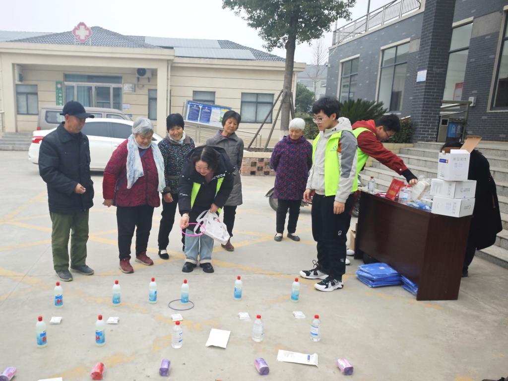 紧接着,备受期待的套圈游戏环节开始。志愿者们耐心地陪伴在老人身边,为他们讲解游戏规则。游戏结束后,志愿者们又投入到登记发放奖品的工作中。他们认真核对老人的信息,将一份份奖品递到老人手中,同时送上真挚的祝福。