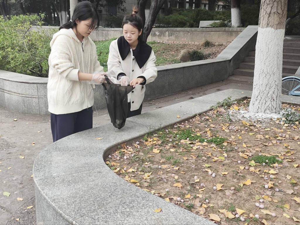 随着活动的正式启幕,14时,东校区的同学们已整装待发,他们迅速清点人数并分组,随后前往各自指定的清扫区域。与此同时,15时,西校区的同学们也紧随其后,投身到这场热火朝天的劳动中。在带队老师的悉心指导下,志愿者们手持夹子与垃圾袋,将路边的纸屑、烟头等废弃物一一拾起;他们挥动扫帚,将地面上散落的枯枝落叶清扫得干干净净,每一片区域都留下了他们辛勤劳动的身影。