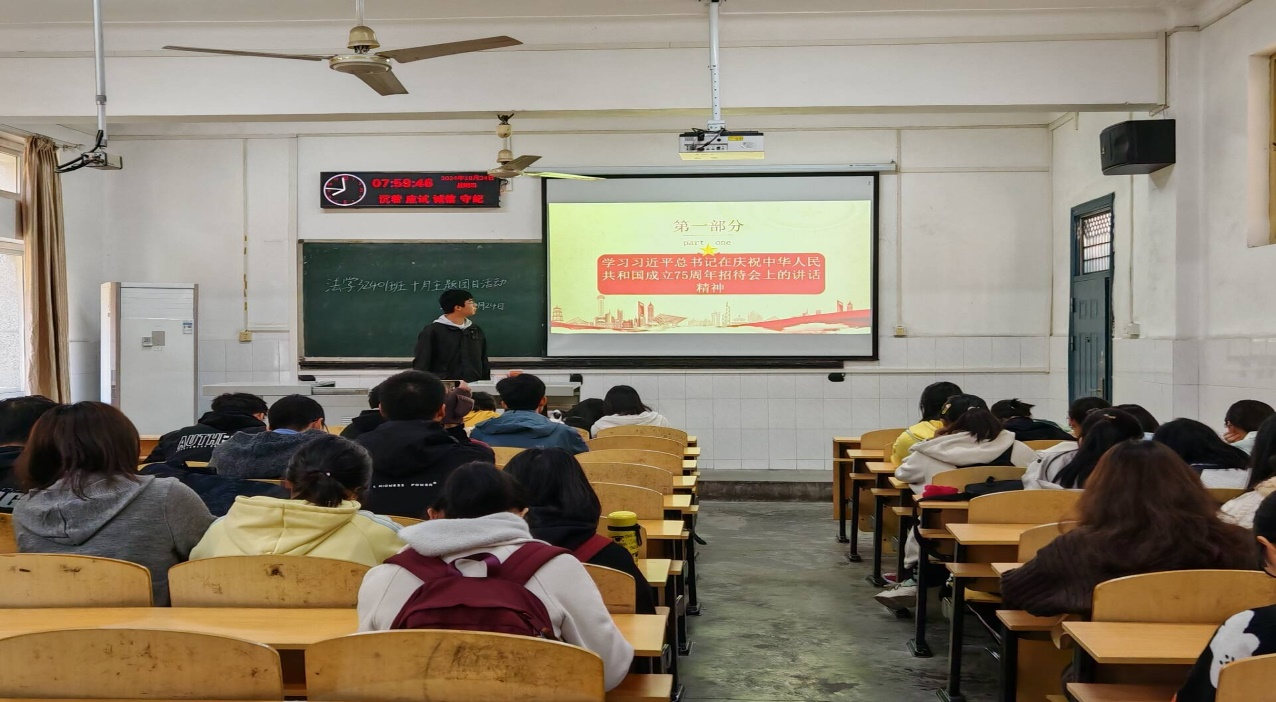 本次主题团日活动重点学习习近平总书记在庆祝中华人民共和国成立75周年招待会上的讲话精神,通过线下集中学习、交流讨论等方式,激励我院学子认真学习专业知识,将个人理想融入国家和民族的事业中;学习习近平总书记重要文章《大力弘扬伟大爱国主义精神,把强国建设、民族复兴伟业不断向前推进》,引领我院青年将爱国主义精神融入到日常工作和生活中,把学习成果转化为服务社会的实际行动;学习习近平总书记在中华人民共和国国家勋章和国家荣誉称号颁授仪式上的重要讲话精神,号召我院学子以英雄模范为榜样,坚决履行新时代青年的使命任务;学习习近平总书记给“银龄行动”老年志愿者代表的回信精神,同学们深切感受到老年志愿者们健康的心态和积极向上的精神;开展“弘扬人链精神,铸就时代辉煌”主题班会,不断加强学生的思想道德教育和安全教育。