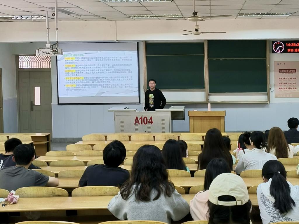 (通讯员李畅)“朋辈互助,谈心谈话”。为了帮助同学们建设良好的心理素质,营造和谐互助的校园心理文化氛围,yl6809永利官网辅导员雷礼作为主讲人,针对不同年级学生,分别于2024年4月18日、22日、23日在东校区13教A104、A403、A404举办了三场心理骨干培训大会。