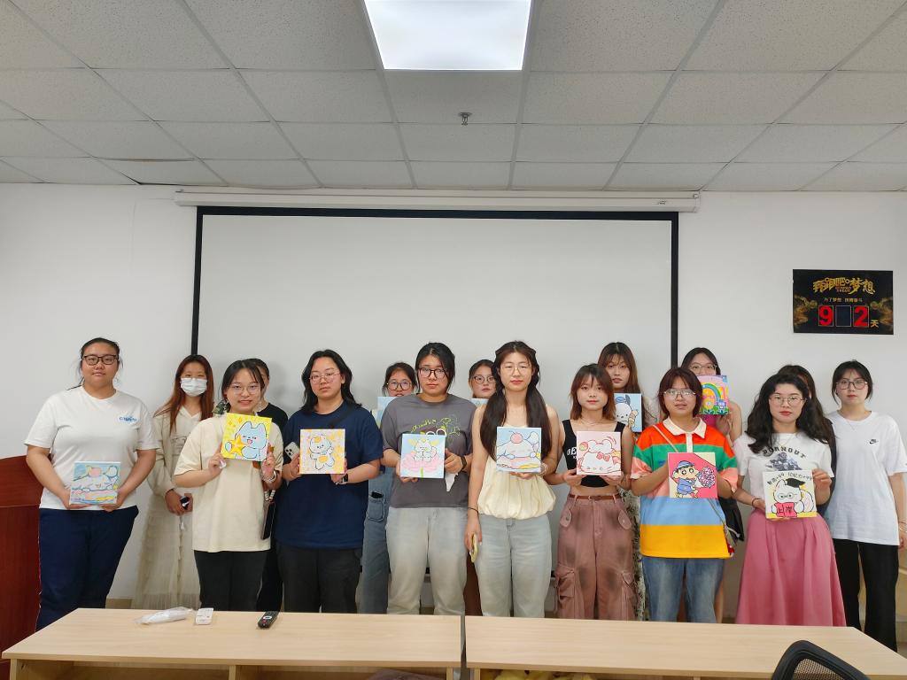 随着活动开始,同学们兴奋地挑选了自己喜欢的画板,在主持人结束开场白致辞后,开始了自己独一无二的创作。调配颜料,赤橙黄绿深浅不一;蘸取落笔,一笔一划匠心独具。渐渐地,一个个可爱的卡通形象跃然纸上——库洛米、玉桂狗、小马宝莉……大家也不再如初见时拘谨,互相分享自己的画作并合影留念,欢快的笑容洋溢在他们的脸上。