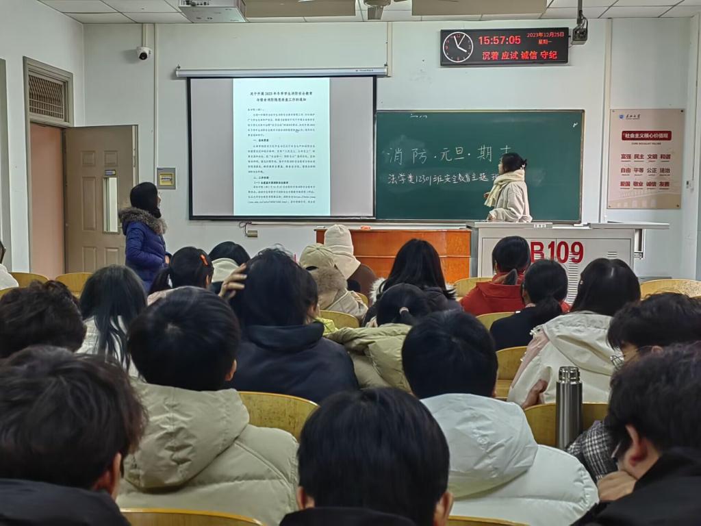本次工作主要包括两个方面:开展消防安全教育专题班会和排查宿舍消防安全隐患。12月21日下午,由学院党委副书记严星带队,全体辅导员、班主任和学生干部全方位开展了宿舍安全隐患排查工作。排查过程中,工作人员对宿舍的电器设备进行了仔细的检查,发现了一些潜在的安全隐患。针对发现的问题,工作人员提醒有安全隐患的宿舍及时进行整改,以确保宿舍的安全。另外,学院组织各班级开展了消防安全教育专题班会。各班安全委员通过组织同学们观看学习消防安全专题微课程,宣讲了消防安全常识、消防应急技能,强调宿舍用电安全,让同学们更加直观地了解火灾的严重性和危害性,进一步增强了他们的消防安全意识。
