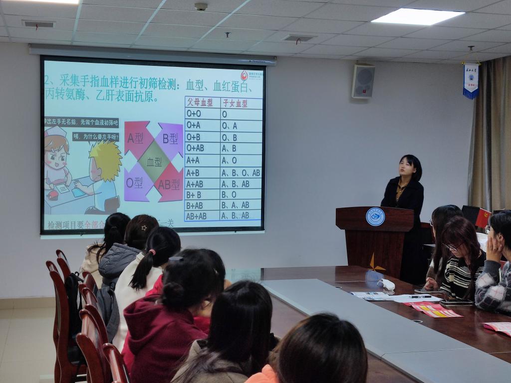 (通讯员牟娇阳)用热血延续生命,用奉献点亮爱心。为进一步普及血液健康知识,提升大学生防护能力,yl6809永利官网于2023年11月7日在文科大楼203开展“血液健康知识”讲座。本次讲座,yl6809永利官网有幸邀请荆州市中心血站护士长周玉琳担任主讲人,辅导员雷礼及yl6809永利官网大一、大二年级各班班委代表参加了本次活动。