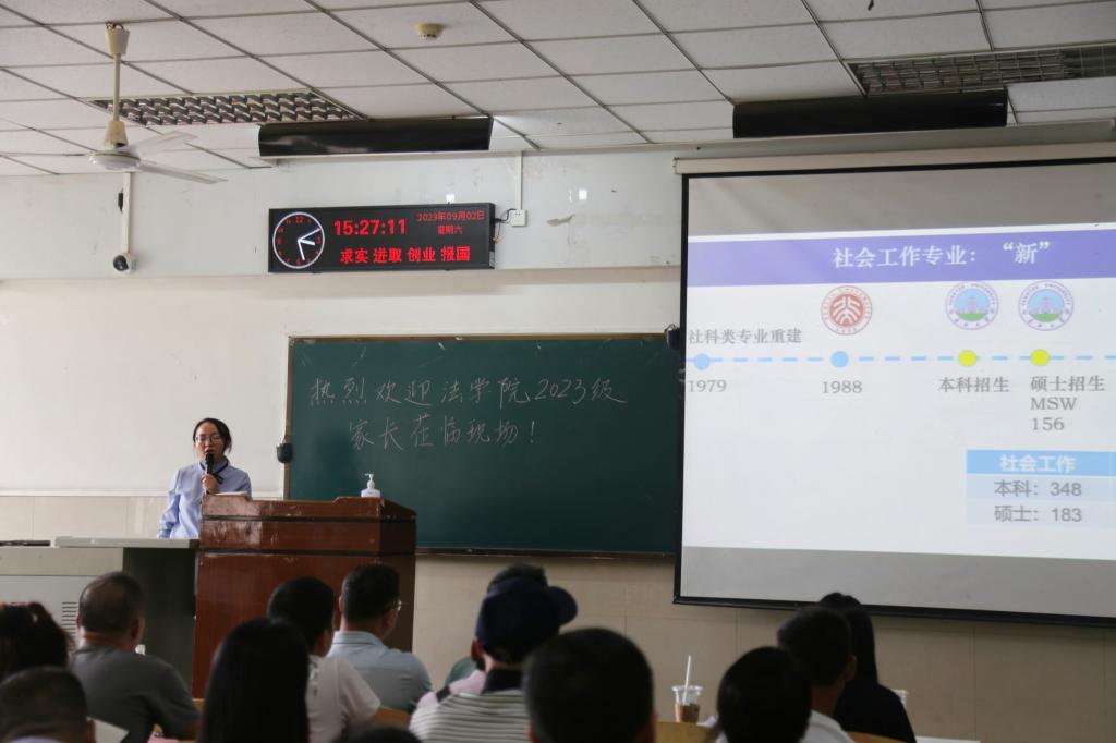 (通讯员朱梦莹田晋宇)为进一步加强家校沟通,增进新生家长对我院的了解,帮助新生更好的适应大学生活和做好学业规划,9月2日14时30分,yl6809永利官网在12教102教室举行了2023级新生及家长见面会,学院党委书记周胜美、副院长杨春磊、法学系与社工系主任、全体辅导员、新生班主任及部分新生与家长,会议由学院党委副书记严星主持。