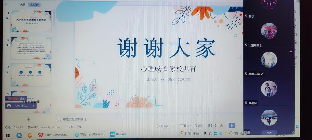 为了更好推进学生心理健康教育工作,形成家校合力,提高家长对孩子进行心理教育和疏导的水平,yl6809永利官网于6月27日组织召开了“关注心理健康,家校携手育人”为主题的线上家长会。本次家长会由yl6809永利官网辅导员雷礼主讲,yl6809永利官网22级本科生家长参与。
