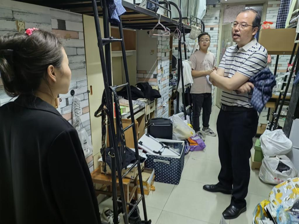 6.16日晚7时,yl6809永利官网领导、学工队伍前往学生宿舍,走访看望重点关注学生,了解学生思想动态、关心同学们学习生活情况,送去学院对同学们的关爱。