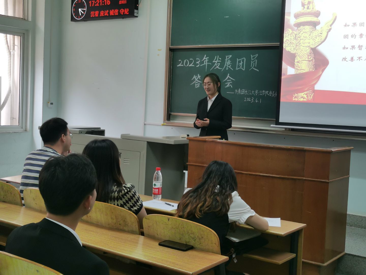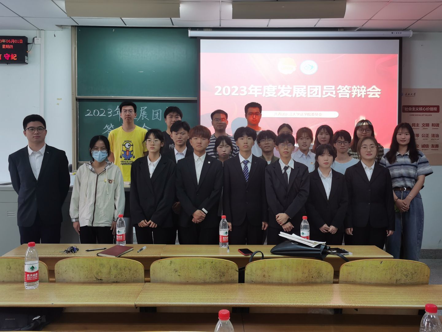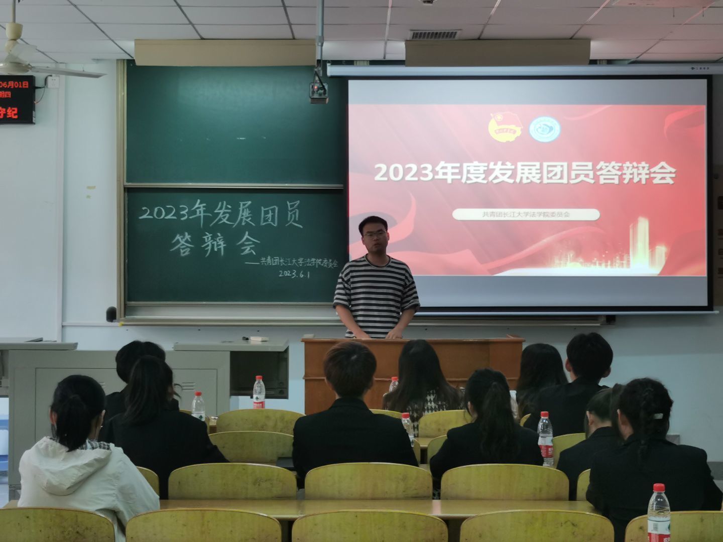 (通讯员张明韵)6月1日下午,在13-C-117教室,yl6809永利官网举行了2023年度新发展团员答辩会,院团委书记雷礼老师以及兼职辅导员邓明慧老师、任豆豆老师担任评委。