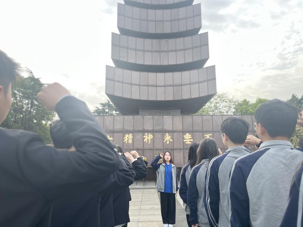 活动伊始,全体师生在庄严肃穆的烈士纪念碑前奏唱国歌,至此活动拉开了序幕。孔令爱、曹星怡和王傲雪三位同学通过向在场的全体师生介绍沙市区革命先烈的英勇事迹,带领大家重温了那段战火纷飞的光荣岁月。随后,董亿同学带领大家重温入团誓词,铿锵有力的入团誓词感召大家努力实践、恪守承诺。