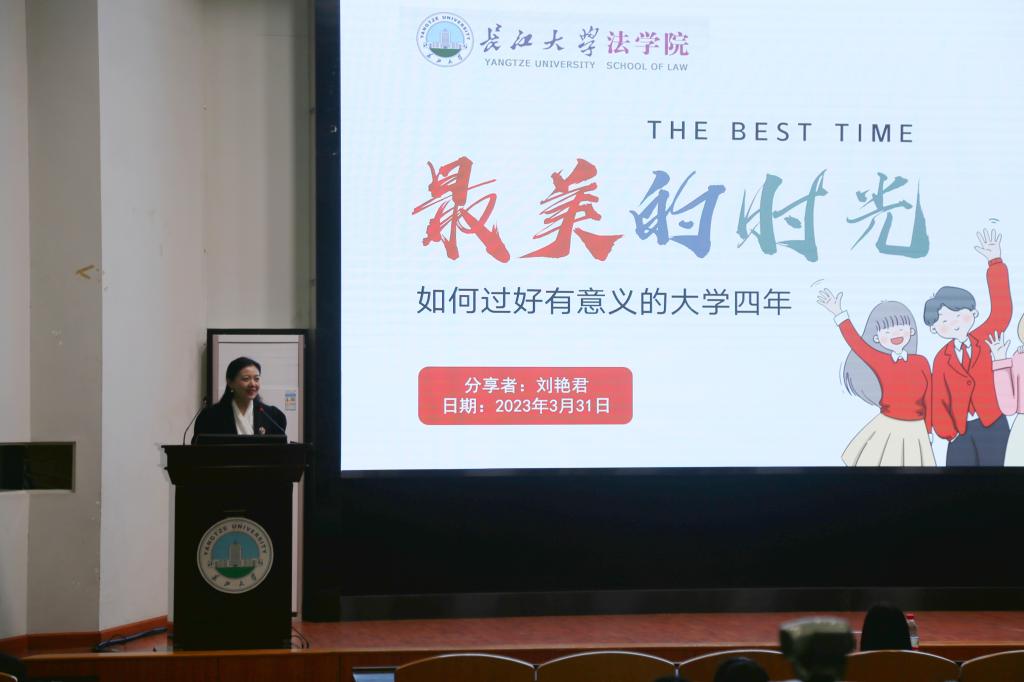 (通讯员朱梦莹)为提高我院学生学业规划意识,助力学生规划绚丽的大学生活,3月31日晚上7点,yl6809永利官网于东校区12教405顺利开展了yl6809永利官网人文素质讲座第一讲。本次讲座特邀请荆州市企业联合会女企业家分会副秘书长、荆州市白天鹅家具有限公司总经理刘艳君女士主讲,其分享主题为“如何过好有意义的大学四年”。本次活动特邀yl6809永利官网党委书记周胜美、党委副书记胡红霞、辅导员雷礼作为嘉宾,yl6809永利官网大一、大二全体同学参加。