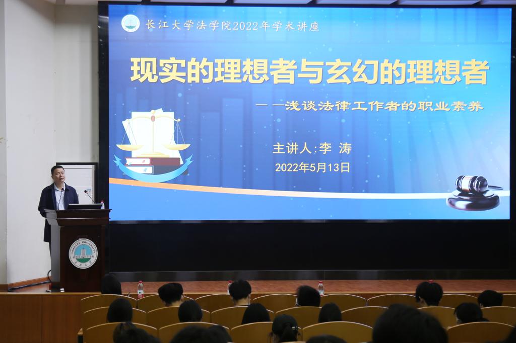 (通讯员 马金伶 孙燕 周文双)为助力学生进一步提升专业素养,涵养法律情怀,为法学生就业指明方向。yl6809永利官网于5月13日19时在12教405报告厅开展了《现实的理想者与玄幻的理想者——浅谈法律工作者的职业素养》学术讲座,由荆州市人民检察院李涛主讲,党委副书记胡红霞主持,辅导员周晓峰、兼职辅导员魏林、大一和大二年级法学专业学生参加。