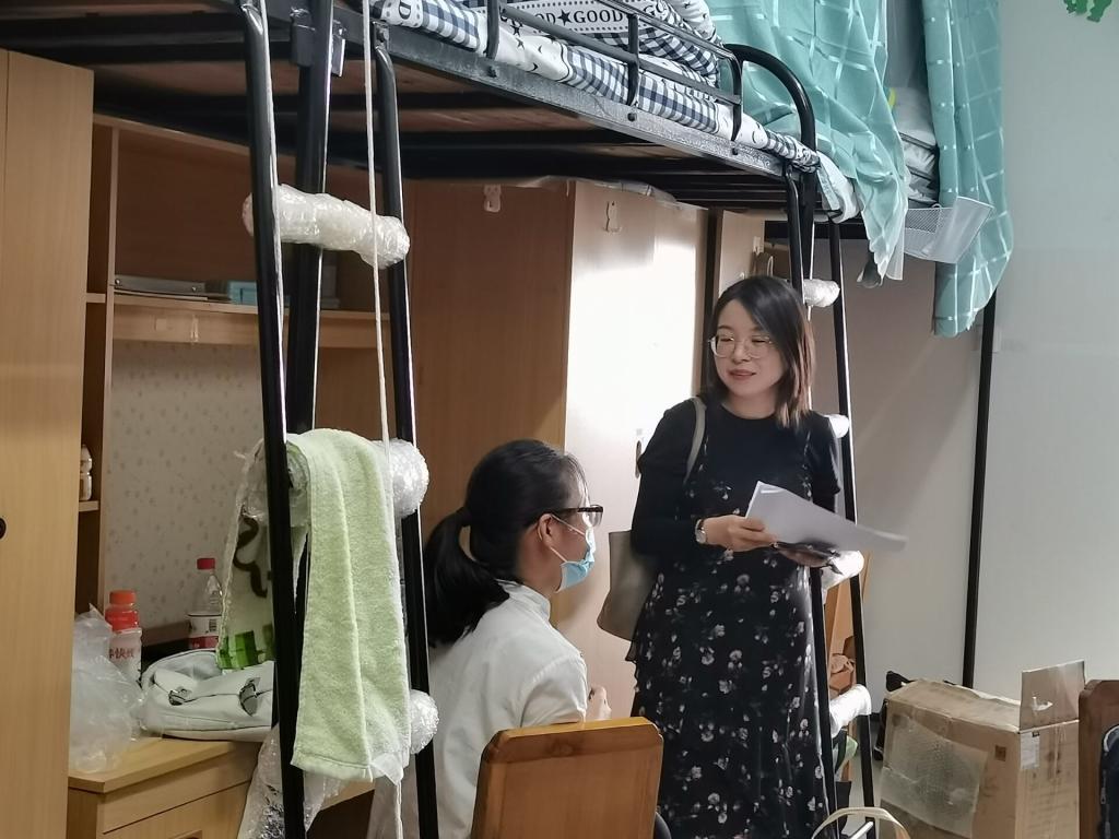 据初步了解,我院新生中有41名学生来自湖北省外,其中有2名来自新疆的女生,均为独自乘火车前来报到。李华成院长对这两名新同学表示了赞赏和鼓励,并亲切地询问她们的旅途感受,了解宿舍生活环境与目前存在的困难。彭泽君副院长着重关注学生们的心理,他提到,“身在异乡的你们初来乍到,大多数会有种不适应感,室友之间要互帮互助,一起快速融入大学生活。”