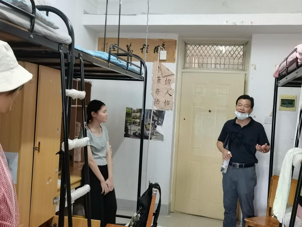 (通讯员:秦一凡)9月4日,yl6809永利官网2021级新生正式报到。为了拉进与同学们之间的关系,了解新生住宿情况,学院党委书记周胜美、院长李华成、副院长彭泽君、副院长唐飞、党委副书记胡红霞,新生班主任和年级辅导员带领志愿者到访新生寝室。
