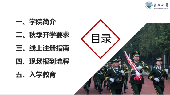 会议伊始,胡书记对新生提出了几点要求:一要遵守学校的疫情防控要求,二要做有责任有担当的大学生,三要心存梦想,在大学的海洋里,希望同学们能够扬帆起航,追逐自己的梦想。随后,周晓峰老师分别从学院简介、秋季开学要求、线上注册指南、现场报到流程及入学教育等方面进行了讲解,重点强调了新生报到的流程及到校后的疫情防控要求,希望新生们可以坚持每日健康打卡,严格遵守学校的疫情防控规定,提前进入学习状态,赢在起跑线。