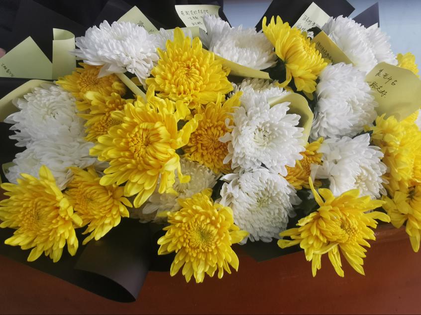 仪式的最后,全体同学默哀三分钟,并记录下自己想对袁爷爷说的话,有位同学这样写到:国士无双,袁老千古,一路走好。同学们的寄语与鲜花一同表达了哀思,至此,此次悼念仪式结束。