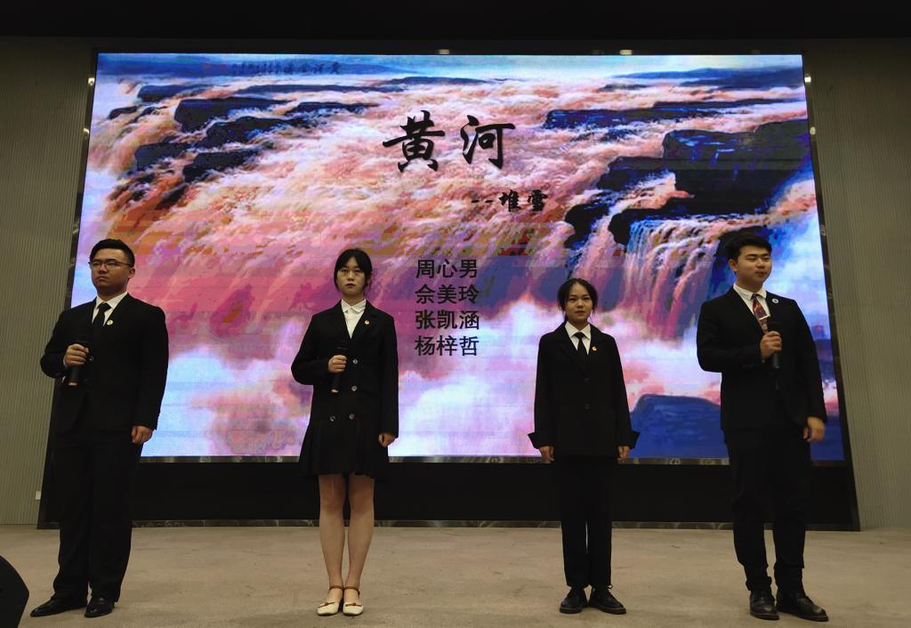 五四朗诵比赛以法学类32004班团体朗诵的《党旗颂》拉开序幕,他们的朗诵饱满深情与热情。法学11901班吕西霜同学朗诵的《满江红》,气势不可当,饱含激情。法学类32006班甘浩田同学朗诵《可爱的中国》,用朴实无华的言语表达对祖国的热爱……同学们饱含感情的演讲,为观众呈上一场视听盛宴!