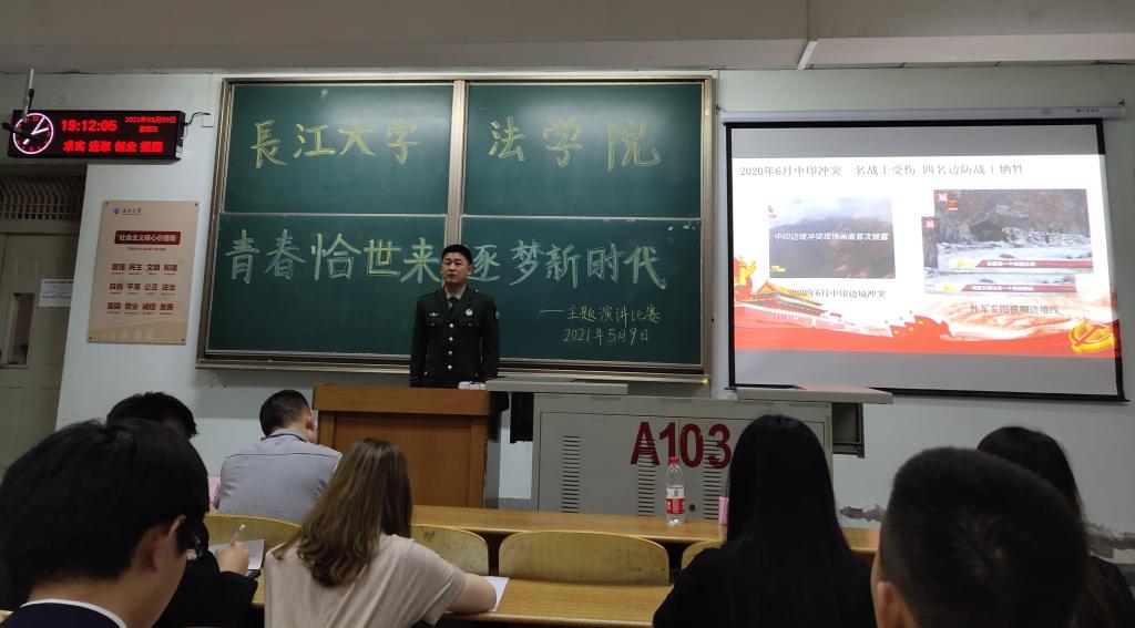 (通讯员:雷瑞婷)五四精神,传承有我。值此青年节之际,我院5月9日晚七时于东校区13教A-103教室举办“青春恰世来,逐梦新时代”主题演讲比赛。本次比赛由法学11901班徐程同学主持,党委书记周胜美、辅导员周晓峰、盛文军老师参加本次活动。
