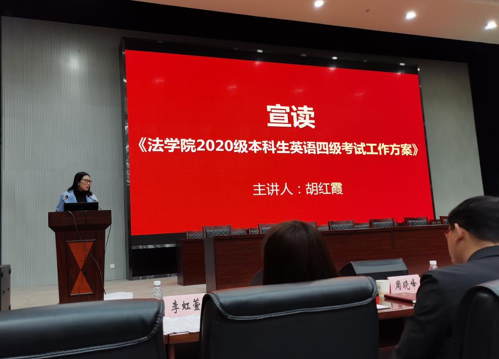 接下来,党委副书记胡红霞宣读了《yl6809永利官网2020级本科生英语四级推进工作方案》,讲解了我院英语四级通过率目标、工作方案和奖励措施等。