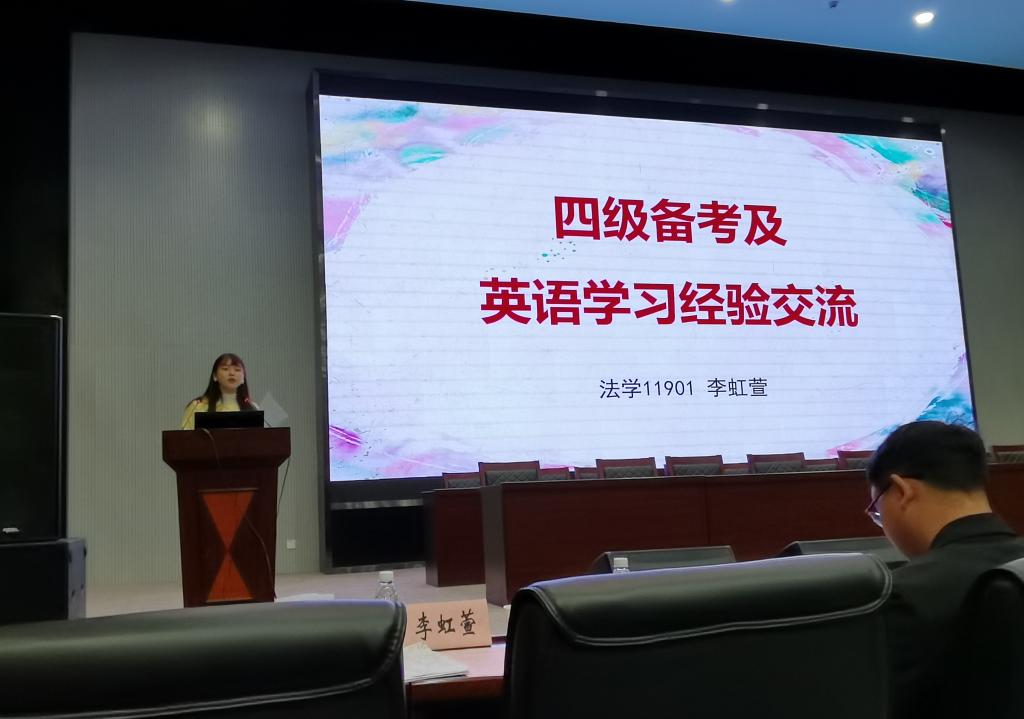 本次会议还邀请了法学11901班李虹萱进行英语四级备考经验分享,她针对备考中可能遇到的困难,考试经验与技巧等与大一同学做了交流。