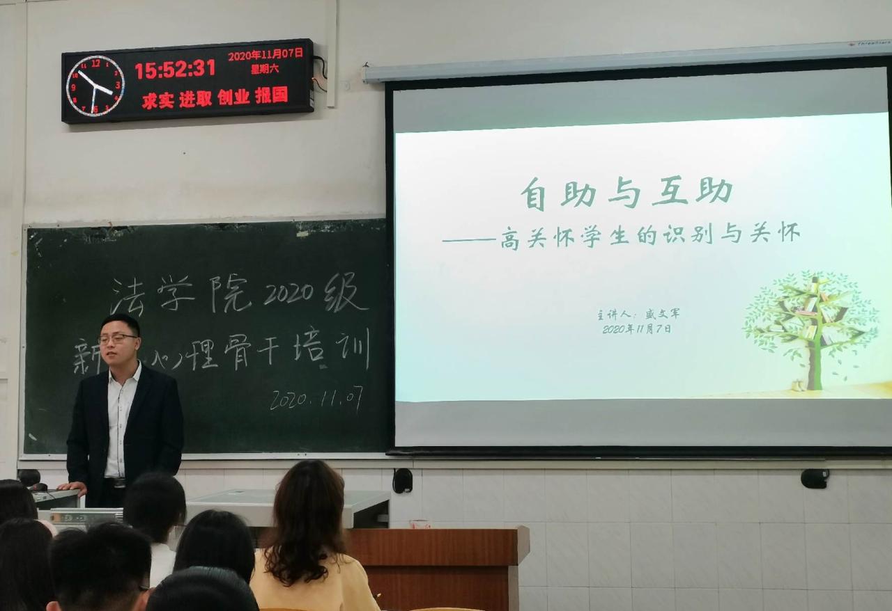 (通讯员:周文双陈婉莹)11月7日,yl6809永利官网于西校区二教208室开展20级新生心理骨干培训。本次培训由18.19级辅导员盛文军,20级辅导员周晓峰老师主讲,20级各班班委与寝室长如数参加。