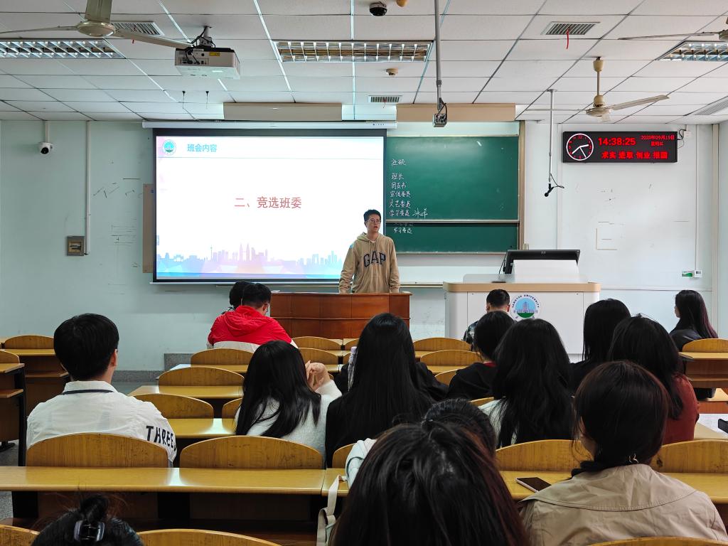 会议伊始,肖芳以详实系统的入学教育拉开序幕。围绕校园安全防线构筑、日常管理规范细则、心理健康素养培育等核心维度,辅导员进行了深入浅出的讲解,既为初入燕园的学子们明晰了行为边界与成长坐标,更传递出学院对新生全面发展的深切关怀与精准护航。随后展开的班委竞选环节,将现场气氛推向高潮。怀揣服务热忱、志在担当奉献的同学们依次登台,或言辞恳切、或意气风发地发表竞选演说。他们结合自身优势阐述班级工作构想,以真诚态度表达服务同学的决心,生动展现了新一代法学学子"敢担当、乐奉献、善作为"的精神风貌。现场掌声此起彼伏,民主投票环节有序开展,最终诞生了新一届班委集体。班会尾声,辅导员盛文军进行总结发言。他首先向当选班委致以诚挚祝贺,随后对全体新生提出殷切期望:希望同学们倍加珍惜研究生阶段的求学时光,尽早树立清晰的学业目标与职业规划;始终秉持"明法笃行"的治学态度,深耕法学专业领域,锤炼批判性思维与实践能力;将个人理想融入法治中国建设的时代洪流,努力成长为德才兼备、知行合一的高层次法治人才。