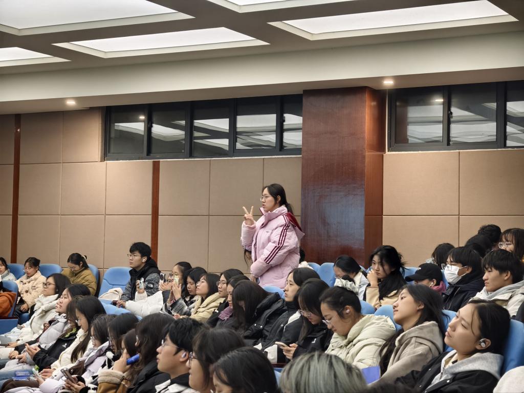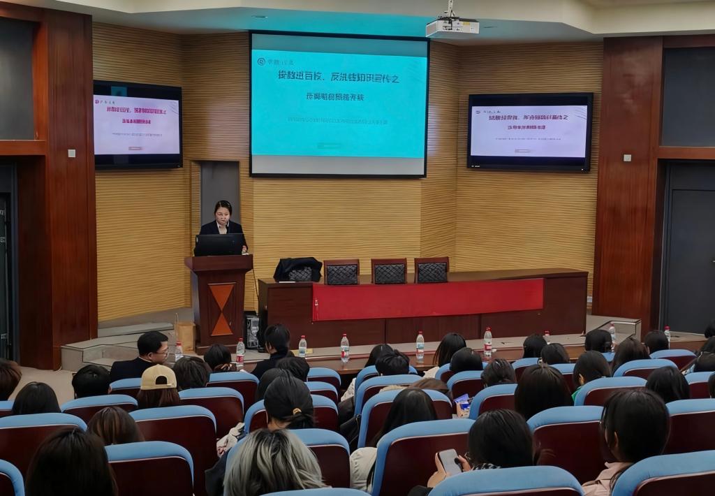 讲座伊始,中国人民银行荆州分行的工作人员带来电信网络诈骗防范专题宣讲。宣讲聚焦大学生群体易遭遇的网络刷单、校园贷等诈骗陷阱,结合真实典型案例,深入剖析诈骗分子的作案手法与套路,细致传授识骗、防骗、拒骗的实用技巧。为充分调动同学们的参与积极性,宣讲环节特别设置了知识互动问答,现场同学踊跃举手、积极应答,答对者获赠精美礼品。整场宣讲将趣味互动与知识普及深度融合,内容详实、干货满满,有效强化了同学们的防诈意识与自我保护能力。