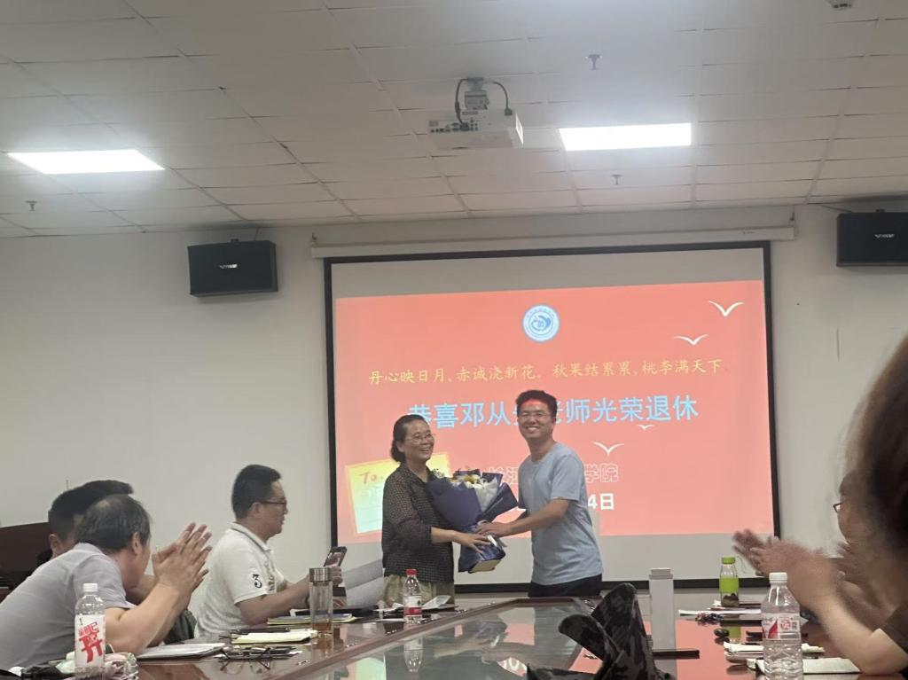 (通讯员 吴敏)7月3日,学院在文科楼1110会议室举行邓从先老师荣休仪式。仪式由副院长唐飞主持,学院领导、教师代表齐聚一堂,共同见证这一温馨时刻。