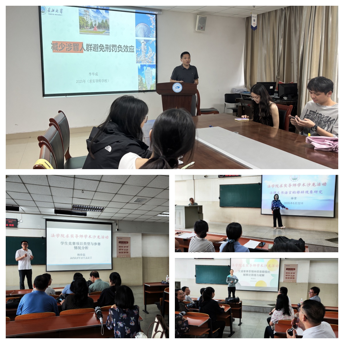 5月22日,yl6809永利官网“求实导师学术沙龙”讲座在文科楼B区203会议室和东12-204同时举行。本次活动以“法学理论与实务的对话”为主题,特邀李华成、杨春磊、程爱军、徐莹四位导师担任主讲嘉宾,吸引了15位硕士生导师及60余名研究生、本科生参与,现场学术氛围浓厚,师生互动热烈。