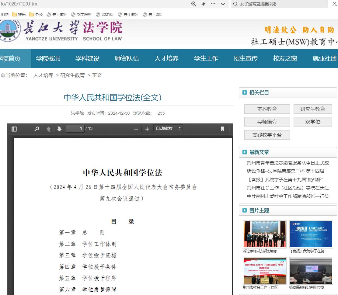 为扩大学习宣传覆盖面,学院还通过网站开设了《学位法》学习专栏,发布了《学位法》全文、解读文章、政策问答等内容,方便师生随时学习。此外,学院还邀请了校内外专家举办专题辅导报告,深入解读《学位法》的核心内容和精神实质,帮助师生更好地理解和掌握《学位法》。