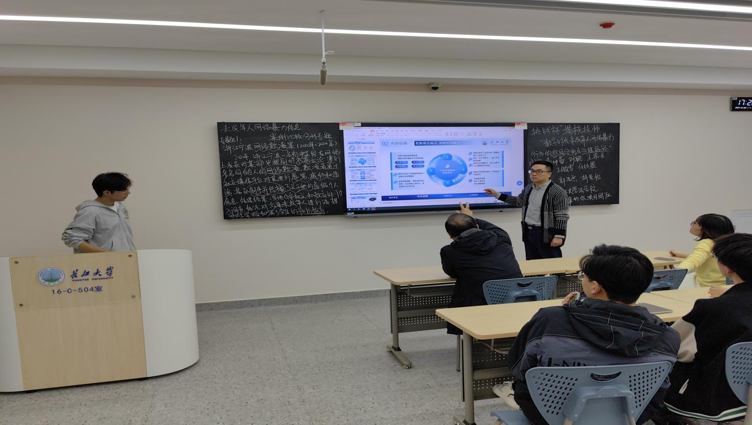 本次专项赛自启动以来,校院两级领导亲自抓,校团委为其提供专门的备战场所,深入挖掘校院两级资源。终审备赛期间,团队成员全力撰写答辩稿、制作PPT,指导老师杨春磊教授全程提供支持,并会同副院长唐飞、院党委副书记严星亲临现场指导,提出了宝贵意见。校团委老师也紧跟备赛进度,组织多轮预演。最后,由项目负责人秦坤蕾出镜进行终审汇报,完成答辩视频的拍摄与递交。