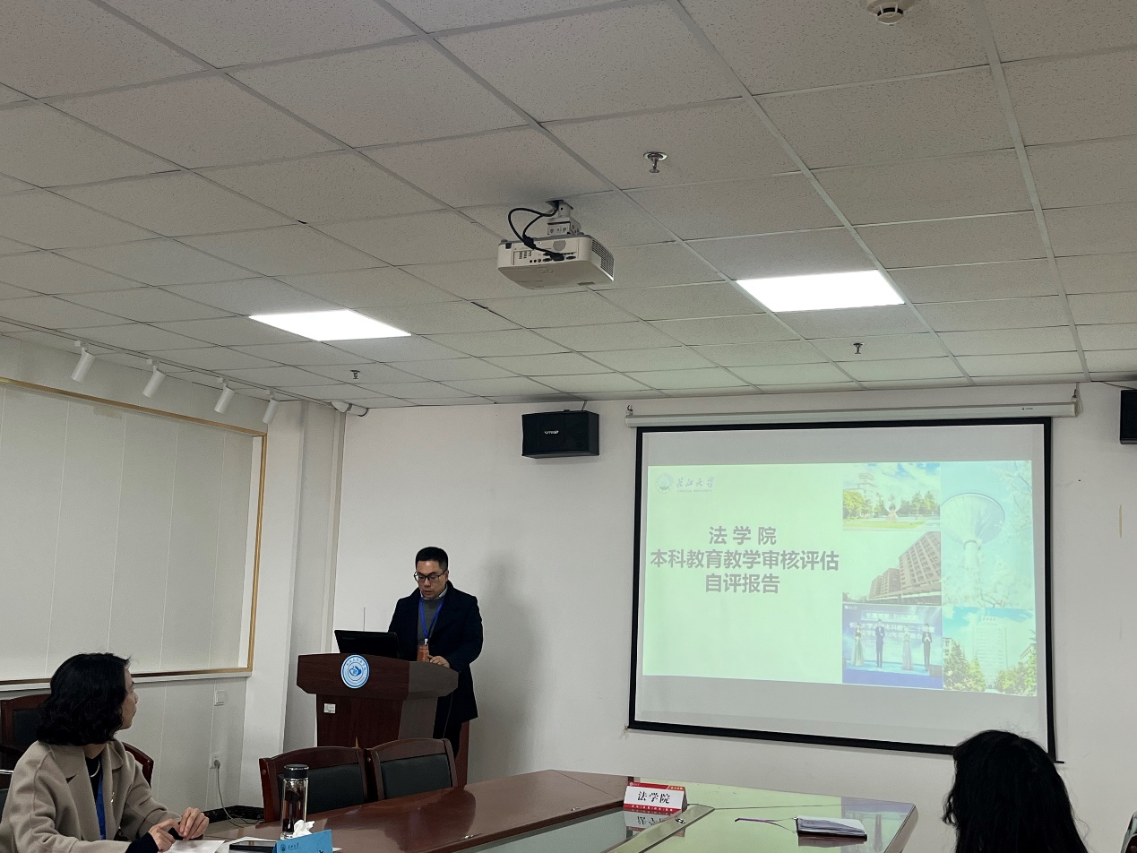 副院长杨春磊从办学方向与本科地位、学生培养过程、专业教师队伍、学生发展现状和教学成效等方面进行了本科教育教学审核评估自评汇报,介绍了近三年学院在相关工作中的特色做法、取得的成效、存在的问题、原因分析及下一步整改举措。