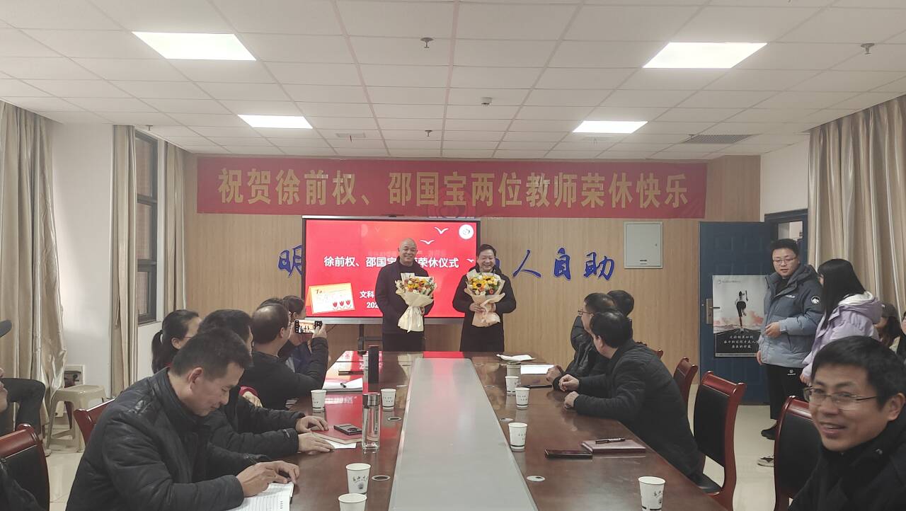 2024年1月14日下午,我院为教师徐前权、邵国宝举行了荣休仪式。学院全体领导、教师代表和学生代表出席仪式,仪式由院长李华成主持。