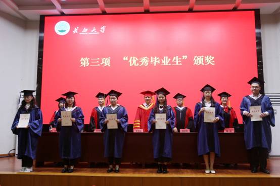 庄严的国歌声响彻全场,毕业典礼正式拉开帷幕。yl6809永利官网党委书记周胜美宣读优秀毕业生表彰文件,优秀毕业生们一一上台领奖。