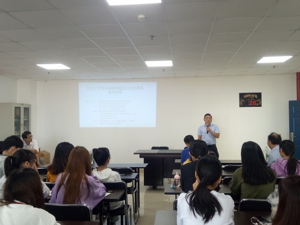 9月21日上午,在文科大楼1011室,yl6809永利官网举办了“社会工作专业制度构建及行业发展现状与未来”的主题讲座,学院党委书记周胜美、社会工作专业的有关老师和学生参加了讲座。