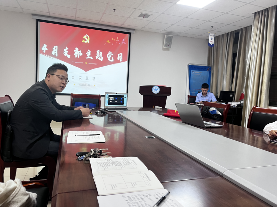 第一项,由陈雪莹同志带领全体党员同志重温入党誓词,牢记初心和使命;第二项,全体党员交纳本月党费,积极履行党员义务;第三项,全体党员集体诵读《党章》第四章党的地方组织相关内容;第四项,集体学习党史学习教育指定内容,关于《中国共产党简史》第九章相关知识。李润金、魏林等党员对党史第九章的主要内容、历史影响进行了解读,就自身专业知识的实践应用、作为党员的时代担当提出了深刻的见解和看法。第五项,学习党的创新理论,学习习近平总书记在省部级主要领导干部学习贯彻党的十九届六中全会精神专题研讨班开班式上的重要讲话、学习习近平总书记在中共中央政治局常务委员会会议上的重要讲话、学习中共中央办公厅印发的《关于推动党史学习教育常态化长效化的意见》、学习长江大学四届三次教代会精神。第六项,开展主题研讨,结合自身岗位,就如何贯彻落实学校四届三次教代会精神,凝聚奋进力量,推进学校“双一流”建设”开展讨论,与会党员同志纷纷发言,汪文杰、陈雪莹同志强调了新时期学生党员的责任与担当,表示要充分发挥专业优势,投身于社会主义事业建设中,为祖国的繁荣富强贡献一份力量。最后,支部书记盛文军就主题党日活动的学习内容进行了总结发言,强调党员同志应该努力加强政治理论学习,不断提高个人理论修养,在履行党员义务中坚守初心,树立远大理想,担负起党和时代赋予的历史使命,为学院、学校的建设作出贡献。