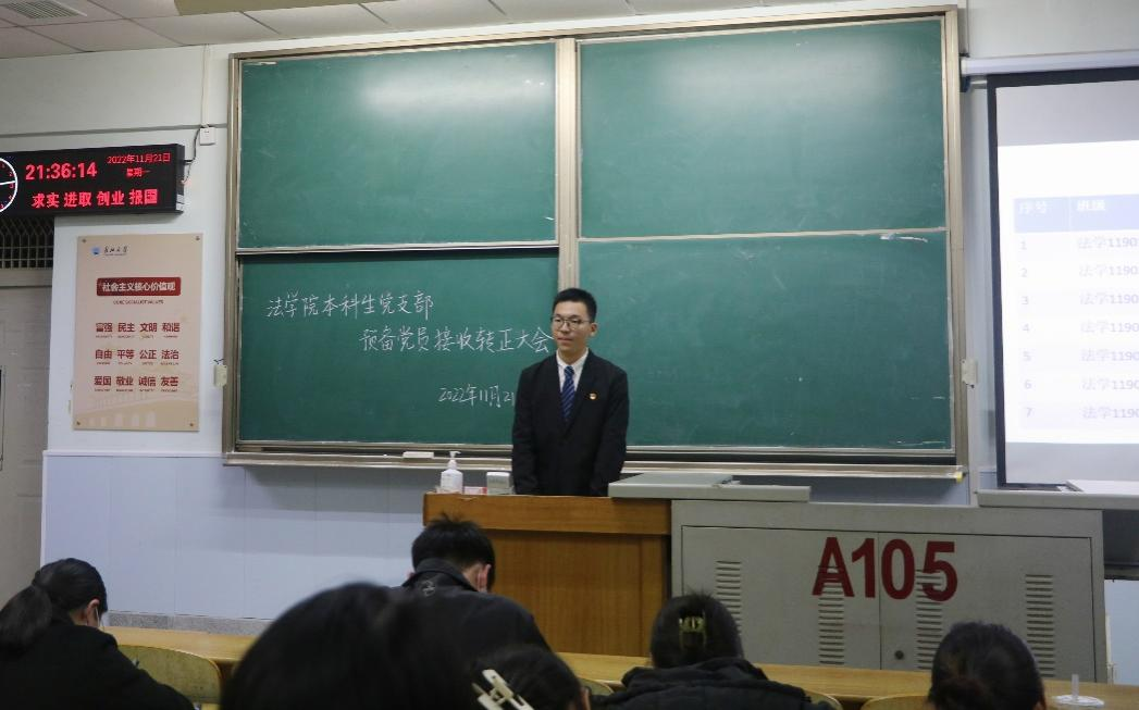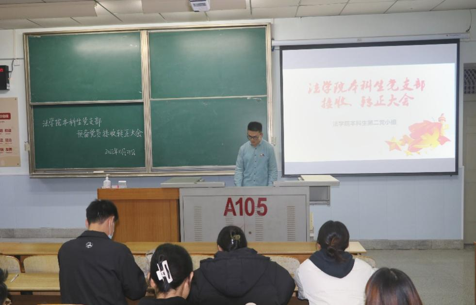 (通讯员 邓交)11月21日晚7时,yl6809永利官网本科生党支部于东校区13教A-105教室召开了2022下半年预备党员接收、转正大会、支部支委换届选举大会暨十一月主题党日活动,大会由党支部成员张毅峰同志主持。