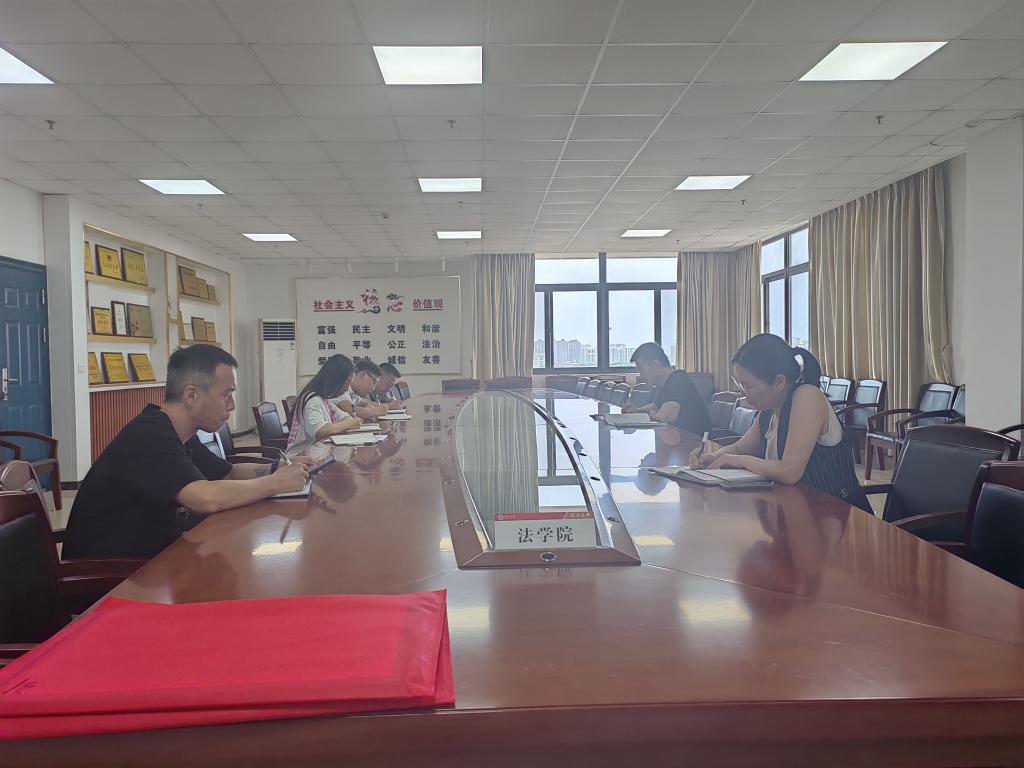 为深入学习贯彻习近平总书记重要讲话精神,坚决落实中央部署、省委要求,锚定“学思想、强党性、重实践、建新功”总要求,7月20日上午,法学院在文科楼1110室召开7月份党委理论学习中心组集中学习会。会议由院党委书记周胜美主持。
