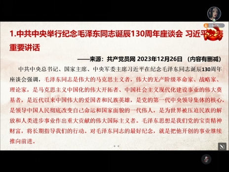 在接下来的理论学习环节中,全体党员们在王澳琪同志的带领下学习了以下四个方面的内容。在习近平总书记重要讲话重要指示方面,党员同志们学习了《中共中央举行纪念毛泽东同志诞辰130周年座谈会习近平发表重要讲话》;在相关制度文件学习方面,研读了中共中央印发《中国共产党纪律处分条例》(2023 年12月8日第三次修订);在省委决策部署方面,党员同志们了解到了《关于深入推进党员干部下基层察民情解民忧暖民心实践活动的意见》的相关内容;在领悟学校精神方面,大家学习了《永远奔向前方一长江大学2024年新年献词》以及校党委书记王建平在2023年度二级党组织书记抓基层党建工作述职评议会上的讲话,通过这些理论学习,全体党员们收获颇丰。
