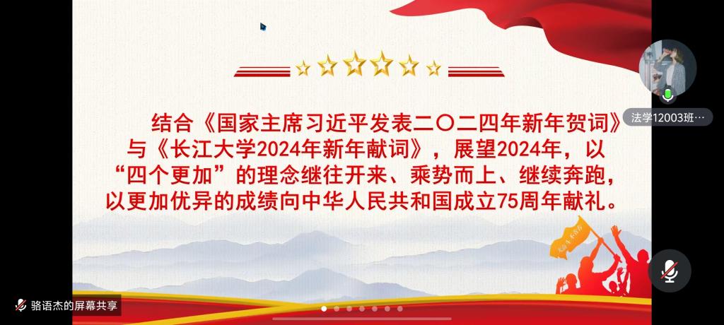 2024年1月17日,yl6809永利官网本科生党支部于线上召开了2024年1月主题党日活动暨2023年党员民主评议大会,会议由骆语杰主持,本科生党支部书记雷礼与全体党员参加。