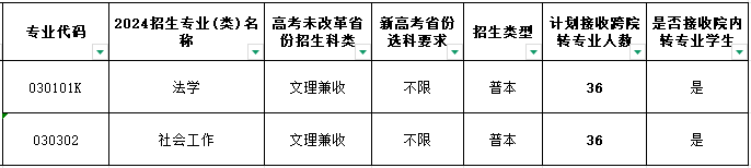 1、拟转入法学专业学生,2024-2025学年第一学期必修课绩点不得低于3.0;拟转入社会工作专业学生,2024-2025学年第一学期必修课绩点不得低于2.0