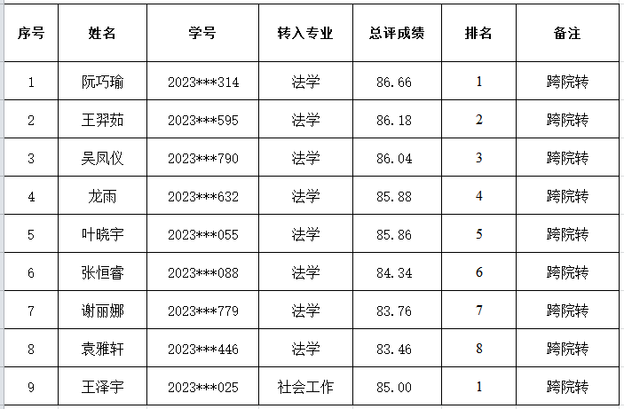 根据《长江大学普通本科生专业分流与转专业管理办法(试行)》(长大校发〔2019〕260号)文件以及本科生院《关于2023级普通本科生秋季学期转专业工作的通知》要求,结合yl6809永利官网2023级本科生转专业工作方案的具体安排,我院于9月7日上午组织了对拟转入学生的面试。综合必修课成绩和面试成绩,经我院党政联席会讨论通过,现将拟接收名单公示如下: