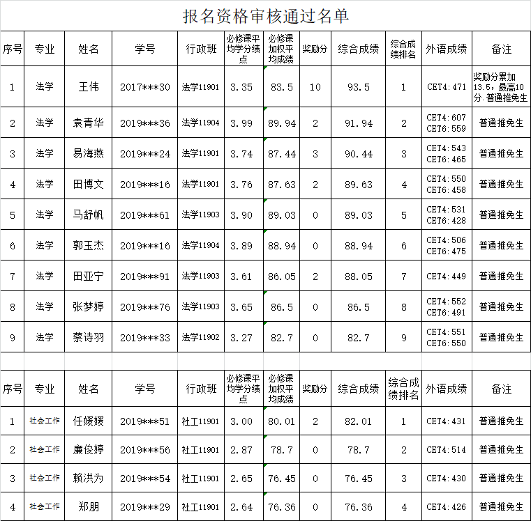 若对公示名单有异议,请于公示期内向学院反映,电话:8062153 。以专业为单位进行综合成绩排序,其中,综合成绩=学业成绩+奖励分,学业成绩为必修课按学分加权的平均成绩。