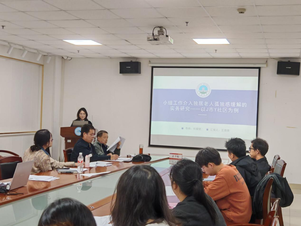 当天下午12时10分起,各答辩组陆续在文科大楼指定教室有序开展答辩。法律一组由徐莹教授担任组长,在文科大楼1110室进行,13名法律硕士研究生围绕论文选题、研究方法、核心观点及前期研究成果进行了10分钟的陈述;法律二组由杨春磊教授领衔,在1107室举行,12名同学依次汇报。社工组由王蕾副教授主持,在203室进行,共35名社会工作专业硕士参与,为人数最多的一组,答辩持续时间较长,组织井然有序。