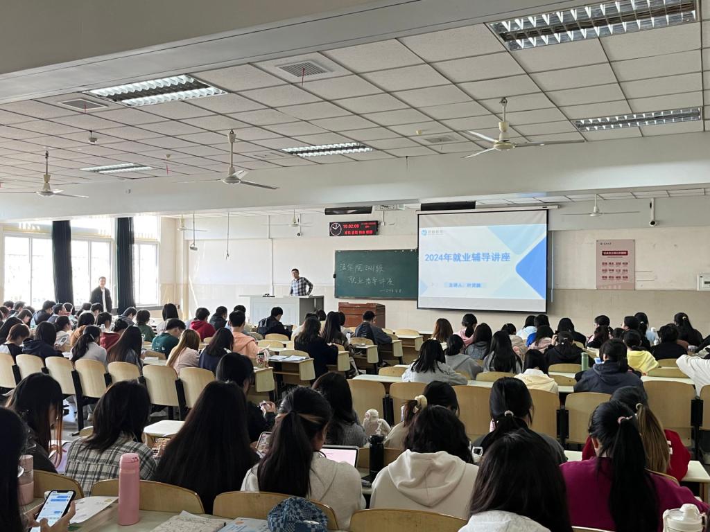 为提高同学们对就业形势的了解,帮助同学们做好未来发展规划,4月8日,yl6809永利官网于12教102举办了一场就业指导宣讲活动,特邀知名讲师叶灵鹏先生进行讲解。本次活动以“把握机遇,规划未来”为主题,涉及了考研、考公、就业和出国等多个方面,为在校学生提供了丰富的职业发展信息和建议。